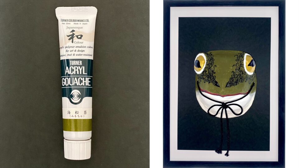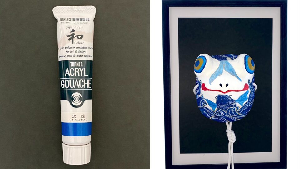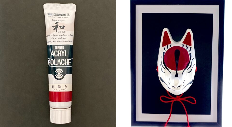 数ある色の中で、今回は天丞丸が愛用している「ターナー アクリルガッシュ」の「Japanesque color」を参考にその色を使ったお面と共にご紹介します。