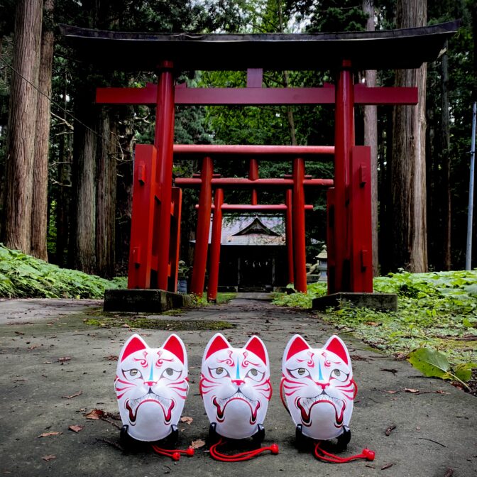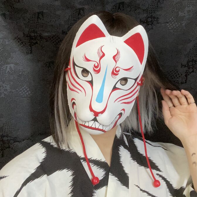 作者の地元である青森の伝統的なお祭り「ねぶた」の狐面を作ってみました。