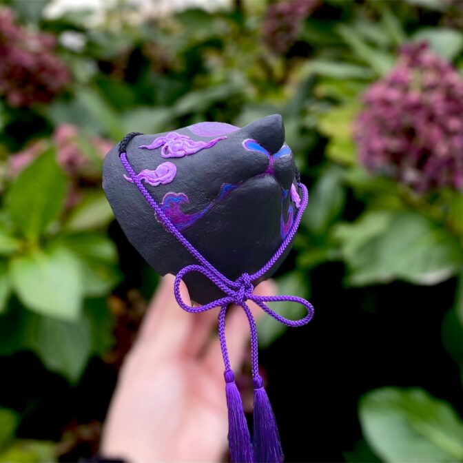 | 注意事項 | ・日焼けをしてしまう場合がございますので長時間の直射日光はお控えください。 ・水に当たってしまうと絵付けが滲んだり、お面の強度が弱くなる可能性があります。 ・湿度が高く換気がされていない状態が続くとカビが生える場合がございます。 |