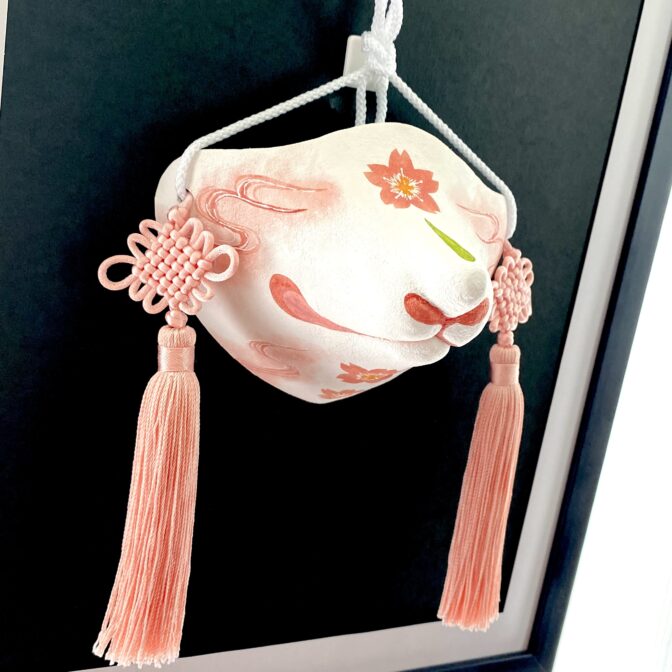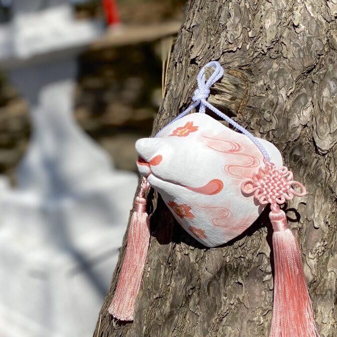 | 注意事項 | ・日焼けをしてしまう場合がございますので長時間の直射日光はお控えください。 ・水に当たってしまうと絵付けが滲んだり、お面の強度が弱くなる可能性があります。 ・湿度が高く換気がされていない状態が続くとカビが生える場合がございます。  |