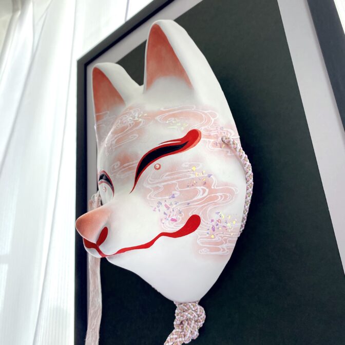 | 注意事項 | ・日焼けをしてしまう場合がございますので長時間の直射日光はお控えください。 ・水に当たってしまうと絵付けが滲んだり、お面の強度が弱くなる可能性があります。 ・湿度が高く換気がされていない状態が続くとカビが生える場合がございます。 |