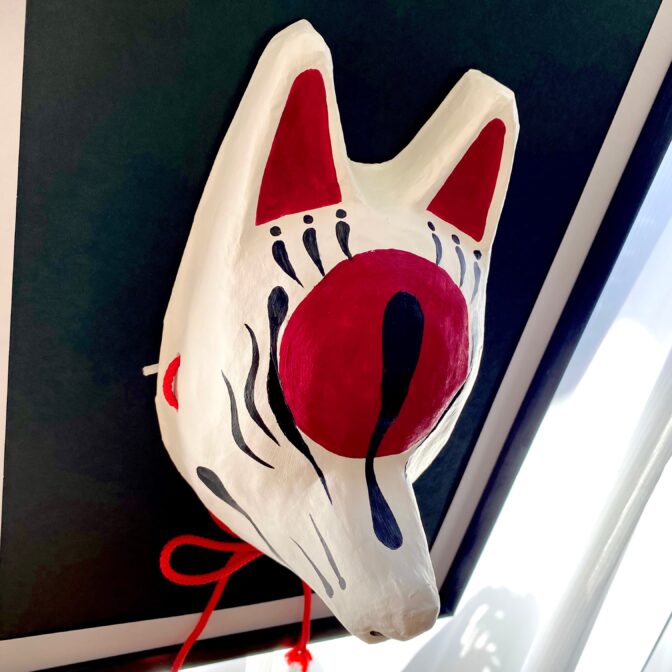 額の日の丸が美しい凛々しい狐面です。アイコンの狐を作りました。