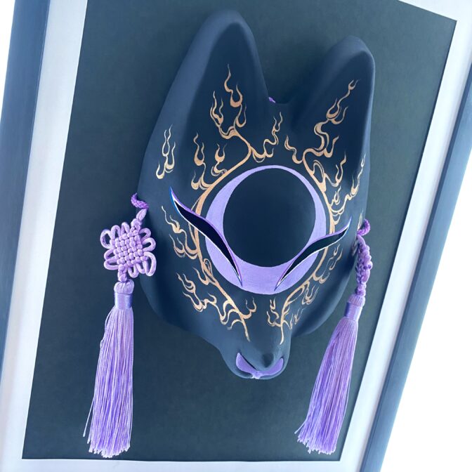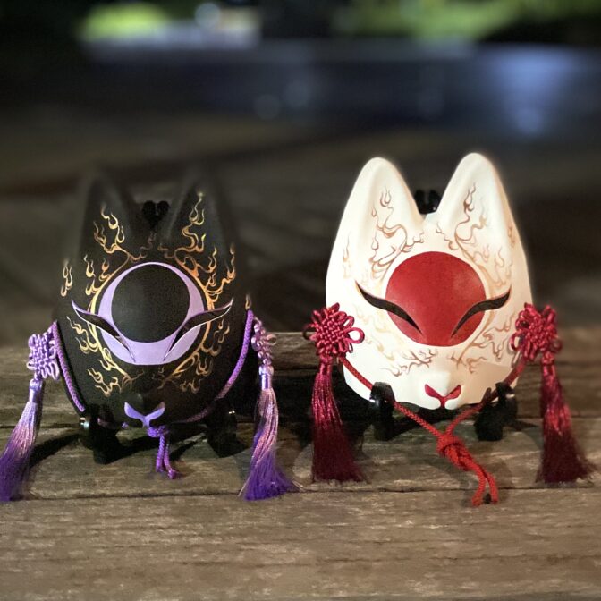 | 注意事項 | ・日焼けをしてしまう場合がございますので長時間の直射日光はお控えください。 ・水に当たってしまうと絵付けが滲んだり、お面の強度が弱くなる可能性があります。 ・湿度が高く換気がされていない状態が続くとカビが生える場合がございます。 |