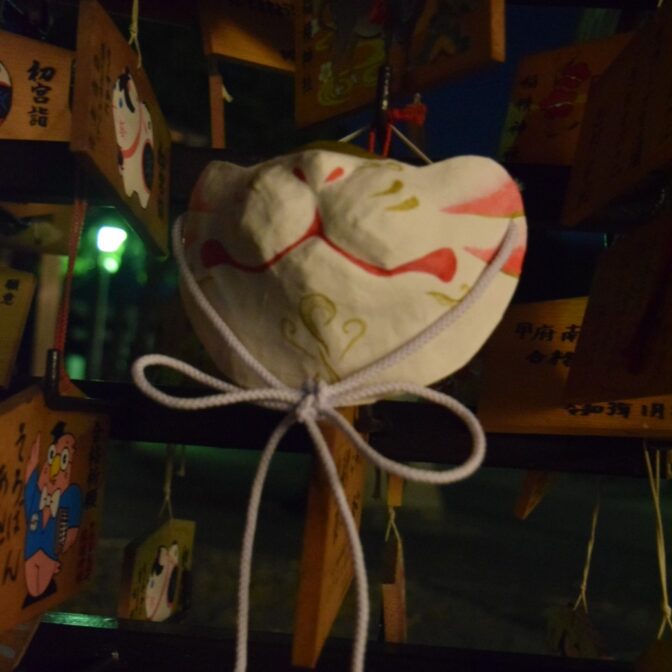 お面がズレるなどございましたら、内側にガーゼを貼るとズレが防止されます。