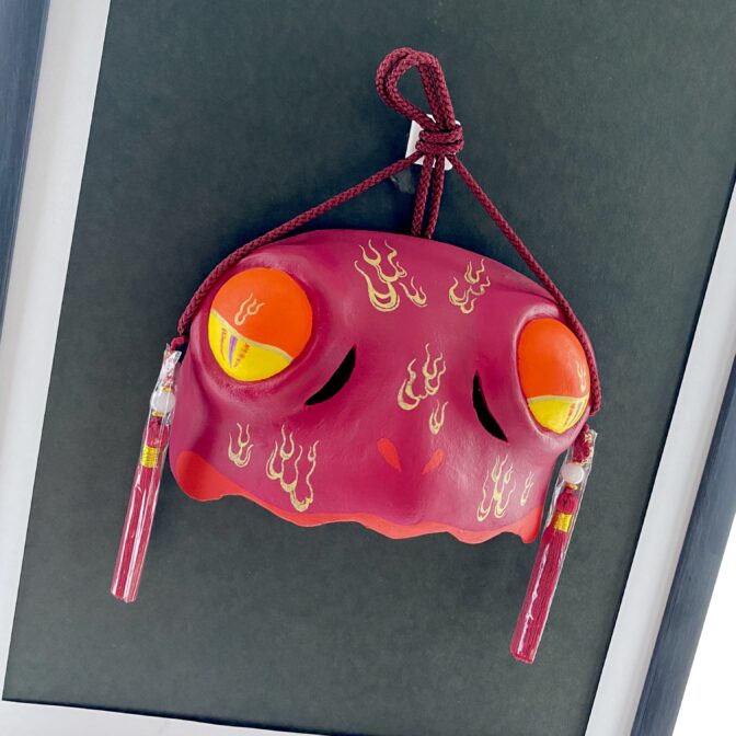 | 注意事項 | ・日焼けをしてしまう場合がございますので長時間の直射日光はお控えください。 ・水に当たってしまうと絵付けが滲んだり、お面の強度が弱くなる可能性があります。 ・湿度が高く換気がされていない状態が続くとカビが生える場合がございます。 |
