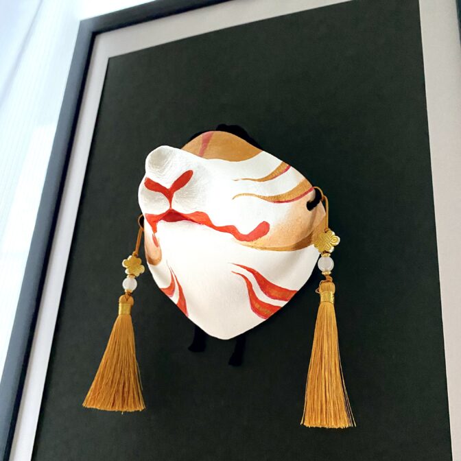 | 注意事項 | ・日焼けをしてしまう場合がございますので長時間の直射日光はお控えください。 ・水に当たってしまうと絵付けが滲んだり、お面の強度が弱くなる可能性があります。 ・湿度が高く換気がされていない状態が続くとカビが生える場合がございます。 |