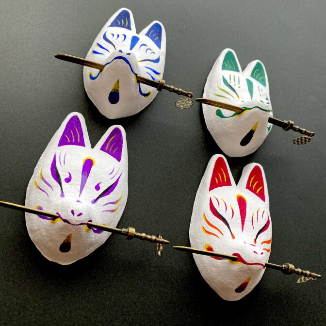 天ノ屋 -ten no ya- では、オーナーの天丞丸(てんすけまる)自らが狐面をはじめとする一点物のお面を制作・販売をしております。アートとしてお部屋に飾るのはもちろん、ポートレートや創作の撮影などでも良い演出ができます。オーダーメイドのご依頼も受け付けておりますので、リクエストなどございましたらお気軽にご相談ください。