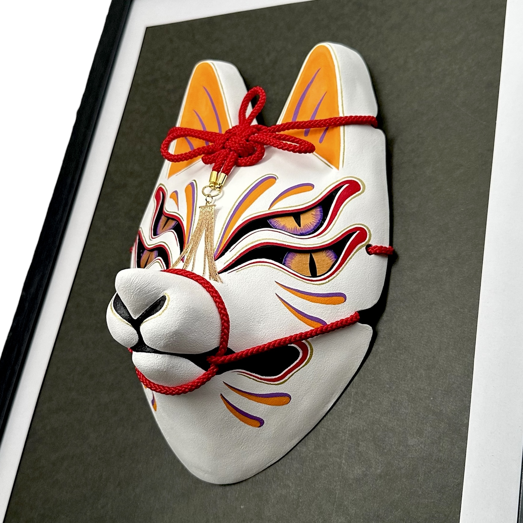 | 注意事項 | ・日焼けをしてしまう場合がございますので長時間の直射日光はお控えください。 ・水に当たってしまうと絵付けが滲んだり、お面の強度が弱くなる可能性があります。 ・湿度が高く換気がされていない状態が続くとカビが生える場合がございます。 |