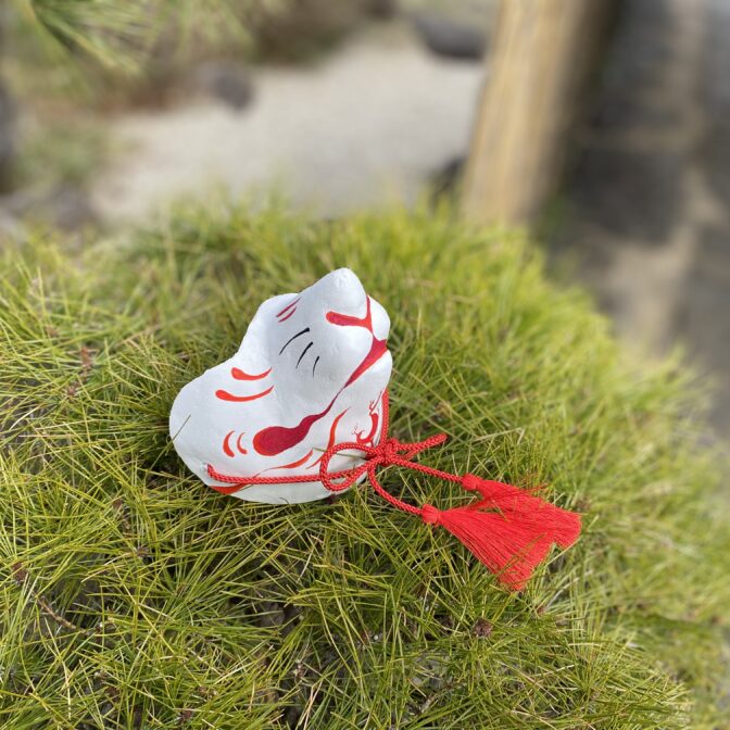 高く凛々しい鼻筋が特徴の口元狐面です。