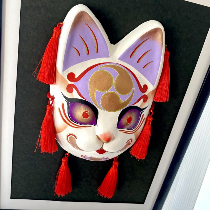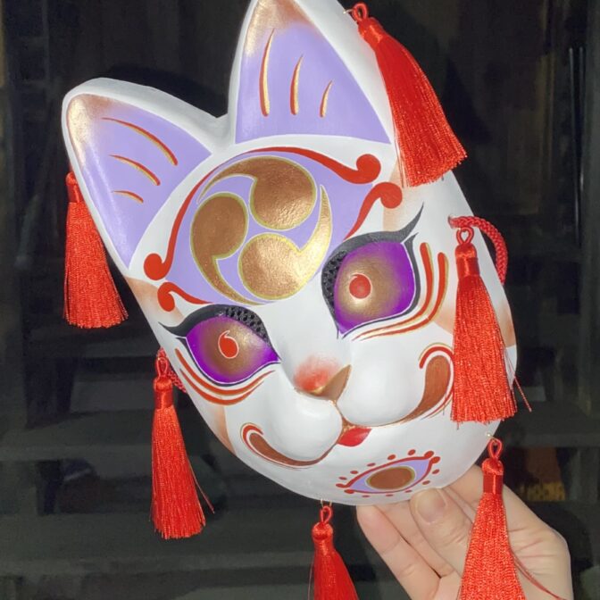 | 注意事項 | ・日焼けをしてしまう場合がございますので長時間の直射日光はお控えください。 ・水に当たってしまうと絵付けが滲んだり、お面の強度が弱くなる可能性があります。 ・湿度が高く換気がされていない状態が続くとカビが生える場合がございます。 |