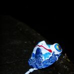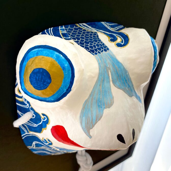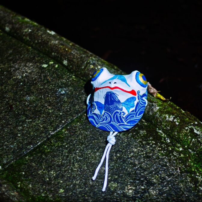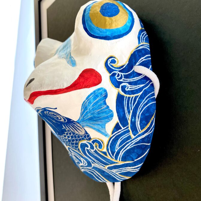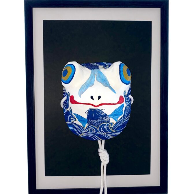 大胆で繊細な鯉と美しい和色【濃縹(こきはなだ)】が映える蛙面です。